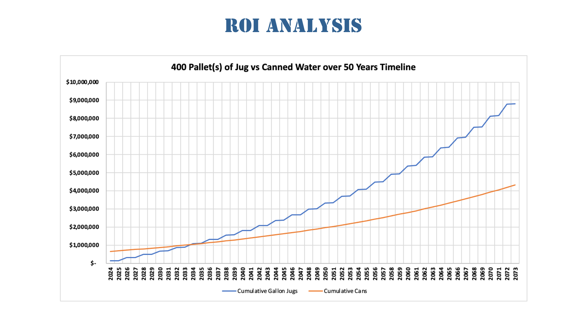 Our canned water has a lab-certified 50-year shelf life; the only one on the market.