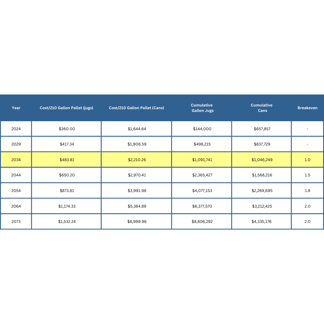 While the cost of plastic jugs continually increases, Blue Can Water not only becomes the cheaper option, but is better for the environment as well.